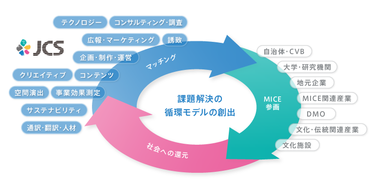日本コンベンションサービス株式会社(JCS)は、MICEを通じて地域とともに未来を描く「共創の場」を育み、持続可能な価値づくりに取り組んでいます。